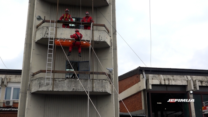 Vatrogasci su pokazali kako izgleda gašenje požara na otvorenom koji je zahvatio krovnu kontrukciju stambenog objekta i spasavanje nepokretnog lica.