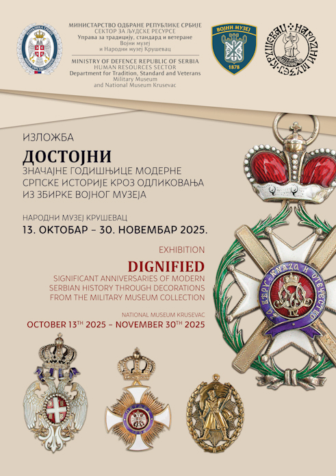 Svečano otvaranje izložbe „Dostojni“, značajne godišnjice moderne srpske istorije kroz odlikovanja iz zbirke Vojnog muzeja zakazano je za ponedeljak u Svečanoj dvorani Narodnog muzeja Kruševac od 18 sati.