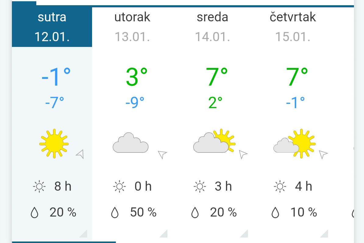 U utorak u Kruševcu nakon veoma hladnog jutra, tokom dana pretežno oblačno. Najniža temperatura -9, najviša dnevna +3°C.