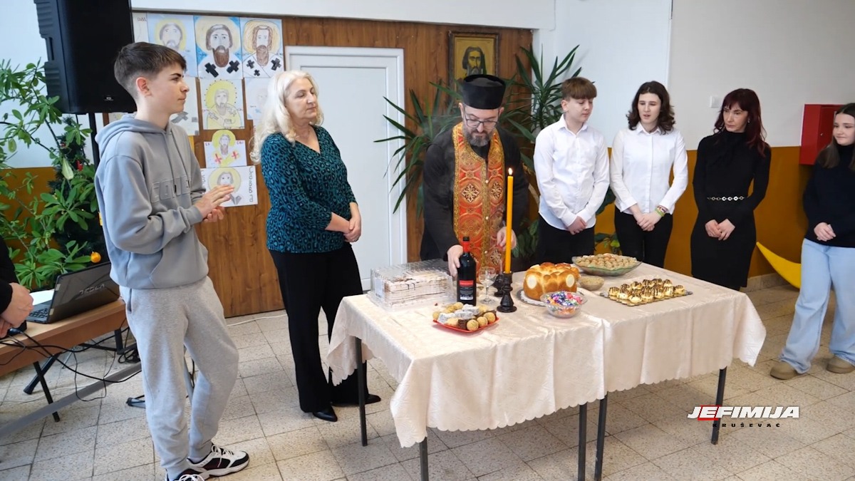 Sveti Sava obeležen je svečarski i u OŠ “Jovan Popović” u Kruševcu. Prigodan program u kreativno uredjenom holu izveli su učenici škole.